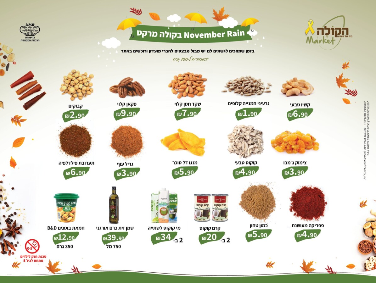 הקולה מרקט מאפשר לרכוש אונליין ולקבל את המשלוח עד הבית – לכל רחבי הארץ. בין מאות המוצרים שלנו תוכלו למצוא – פיצוחים קלויים, אגוזים טבעיים, תבלינים, תערובות ייחודיות, קטניות, קמחים, פירות יבשים, לחמים, עוגיות, חמוצים, שמני זית, ממרחים ורטבים לבישול, פסטות מהמטבח האיטלקי, מגוון מוצרים מהמטבח האסייתי, קפה איכותי במשקל, חליטות תה, מוצרי בריאות, מוצרי טבע, מוצרים ללא גלוטן, מתוקים ועוד המון דברים טובים…